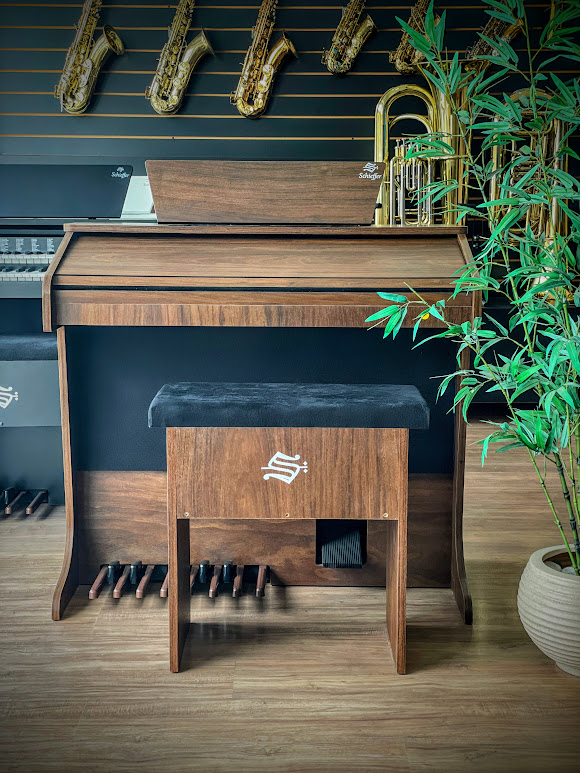 Produto de vitrine da nossa loja (tem pequenos detalhes conf fotos), som autêntico de órgão igual que se ouve nas igrejas.