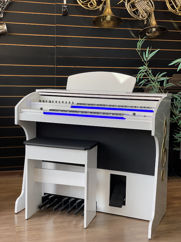 Órgão Eletrônico Lumiere Alpha 3 branco brilho com clave dourada #alpha-3-branco-brilho-clave-dourada